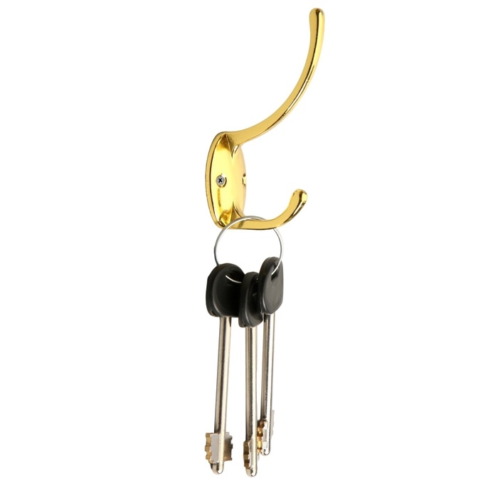 Крючок мебельный ТУНДРА TKD012, двухрожковый, золото