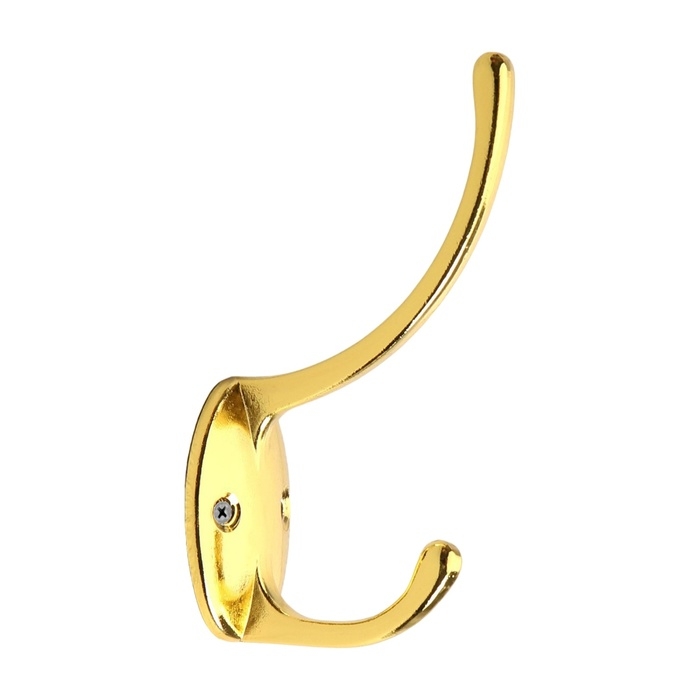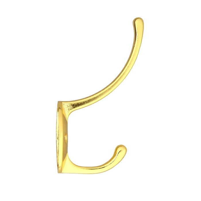 Крючок мебельный ТУНДРА TKD023, двухрожковый, золото