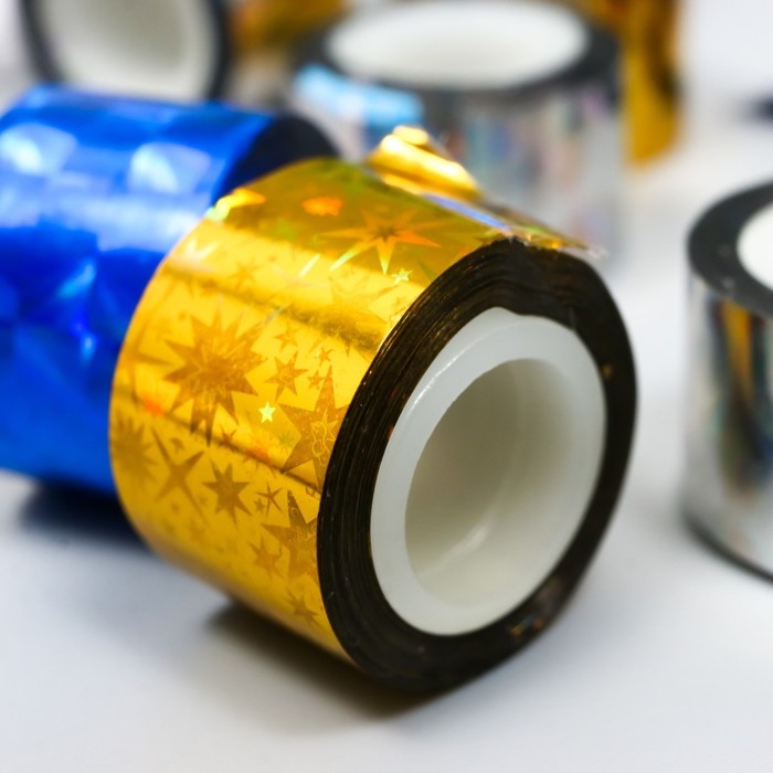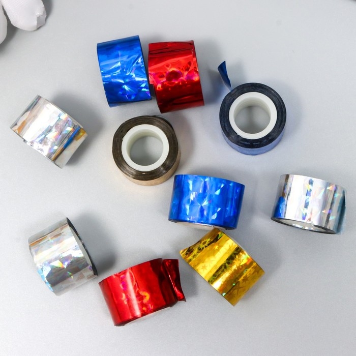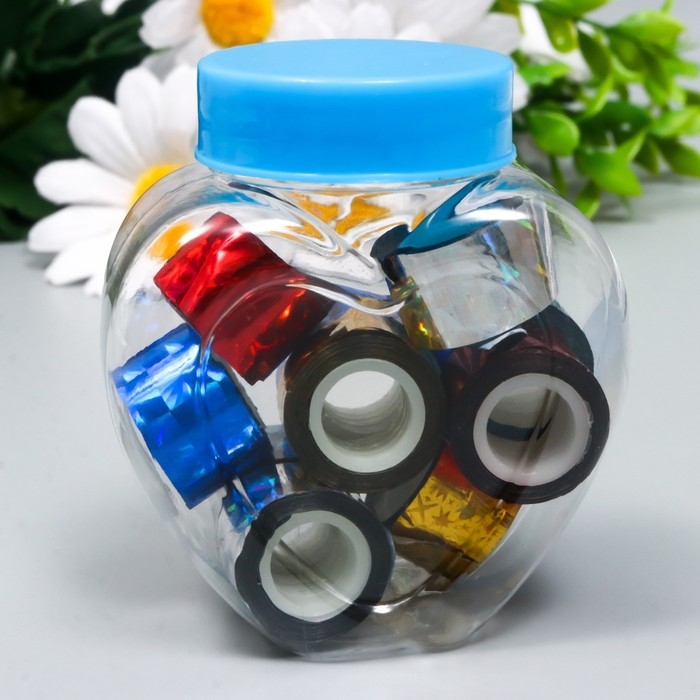 Клейкая лента пластик в банке "Голография" (набор 10 шт) цвета МИКС 1,2смх1м 6,3х5,3х3,4см