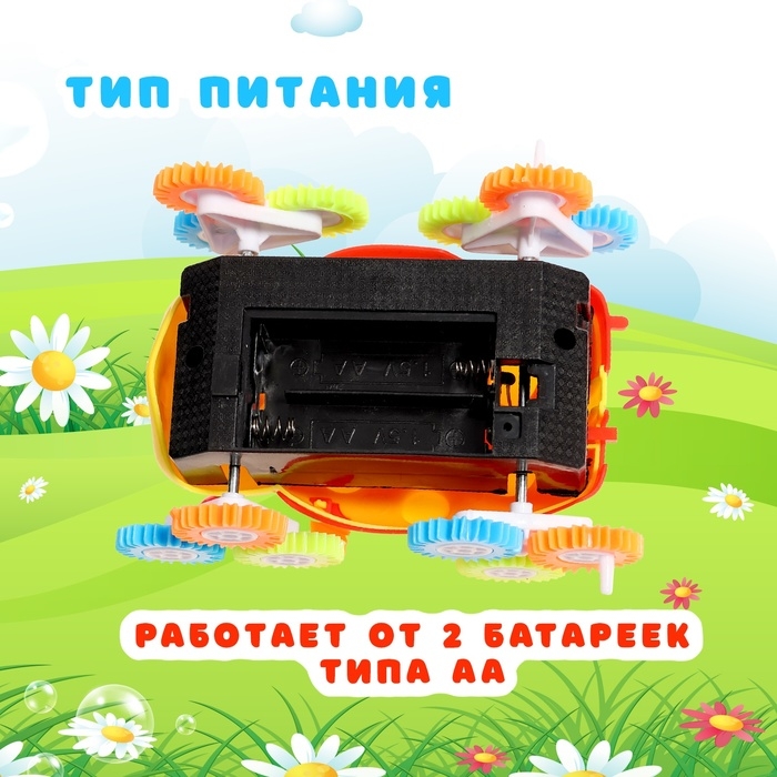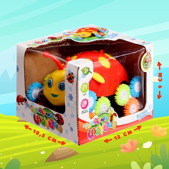 Вставьте 2 батарейки типа АА (в комплект не входят), и божья коровка поедет в произвольном направлении. Если чудо-машинка столкнётся с препятствием, она не остановится, а перевернётся, снова встанет на колёса и продолжит движение.
