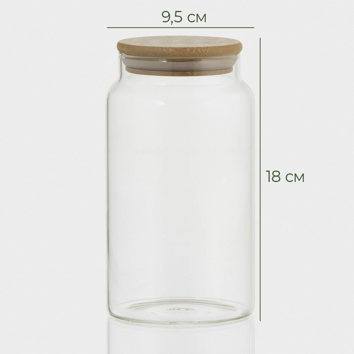 Банка стеклянная для хранения сыпучих продуктов Bella Tenero «Эко», 1 л, 9,5×18 см, с бамбуковой крышкой