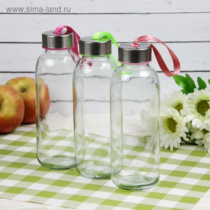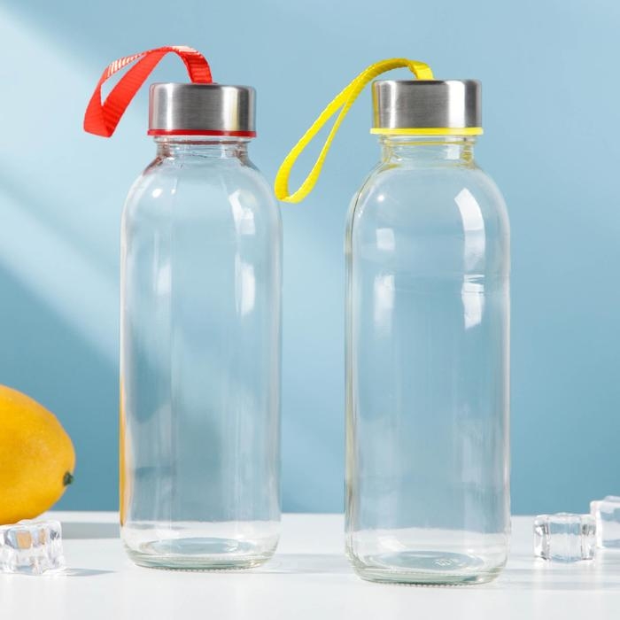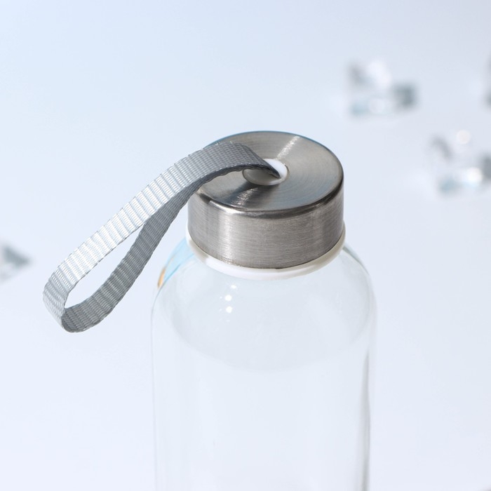Бутылка для воды стеклянная «Лидо», 400 мл, h=18 см, цвет ремешка МИКС