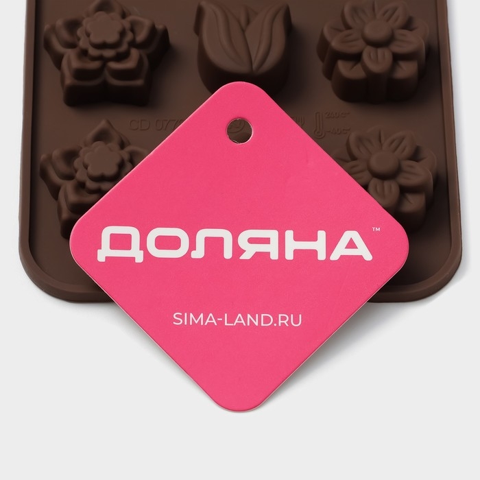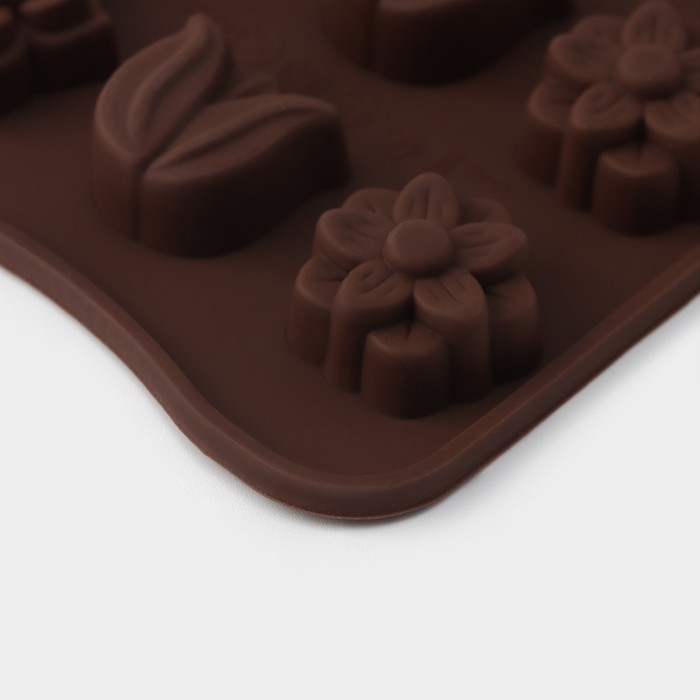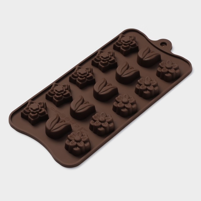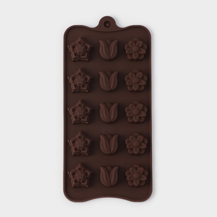 Форма для конфет и шоколада Доляна «Поляна», силикон, 20,5×10,5×1,5 см, 15 ячеек (2,3×2,3 см), цвет коричневый