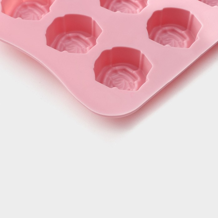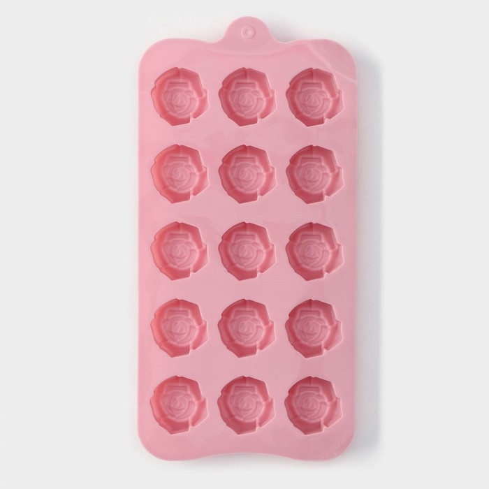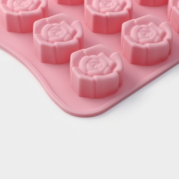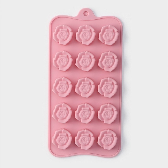 Форма для конфет и шоколада Доляна «Розочки», силикон, 20,5×10,5×1,5 см, 15 ячеек (3×3 см), цвет розовый