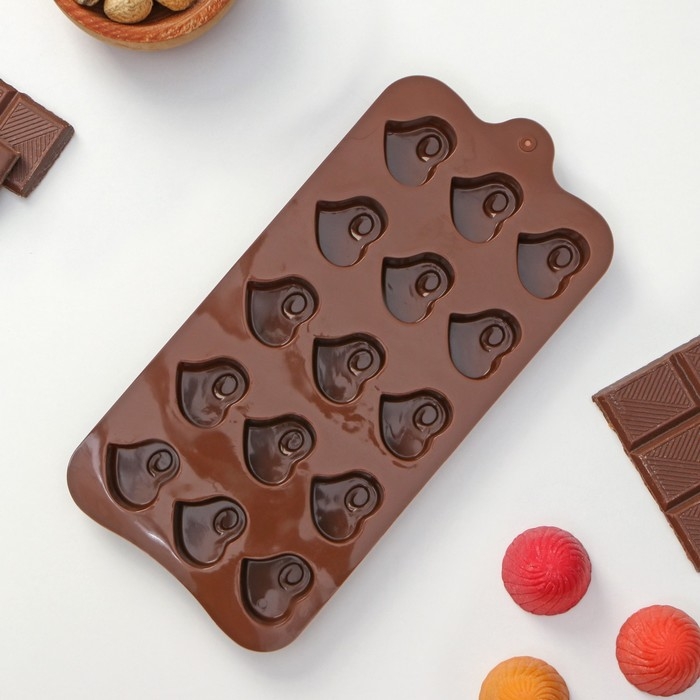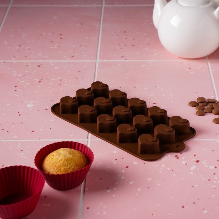 Форма для конфет и шоколада Доляна «Сердцеедка», силикон, 21,5×11×1,5 см, 15 ячеек, цвет коричневый
