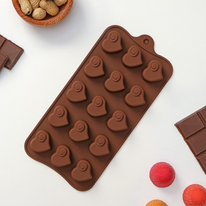 Форма для конфет и шоколада Доляна «Сердечко», силикон, 21×10 см, 15 ячеек (2,7×2,8 см), цвет МИКС