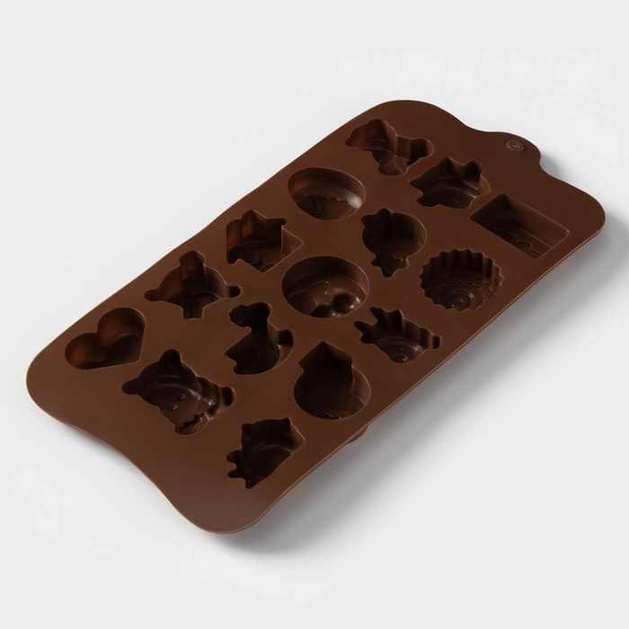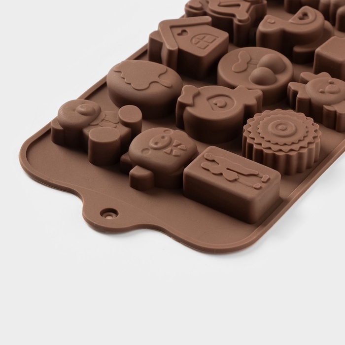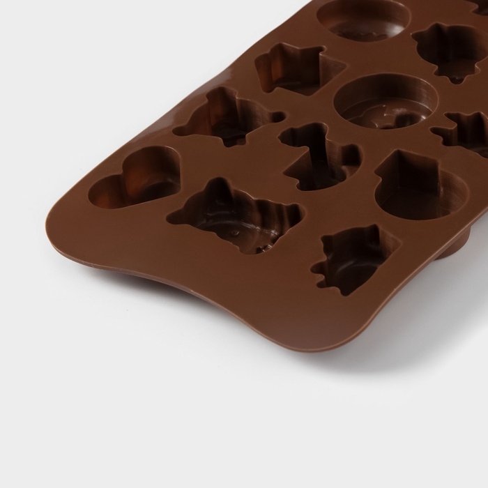 Форма для конфет и шоколада Доляна «Счастье есть», силикон, 21×11×1,5 см, 15 ячеек, цвет коричневый