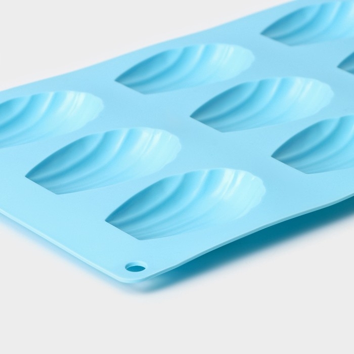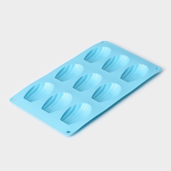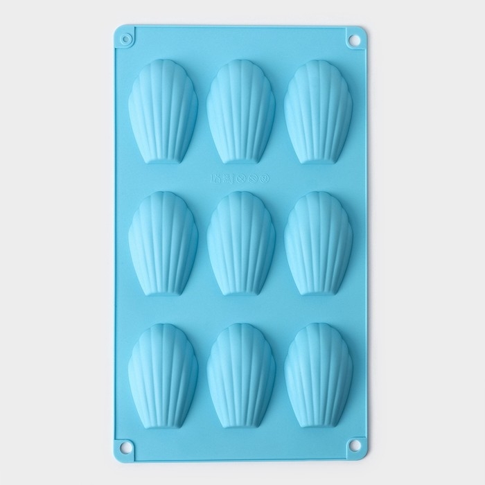 Форма для выпечки Доляна «Подводный мир. Ракушка», силикон, 28×17×2 см, 9 ячеек (6,7×4,5×1,3 см), цвет голубой