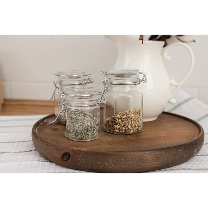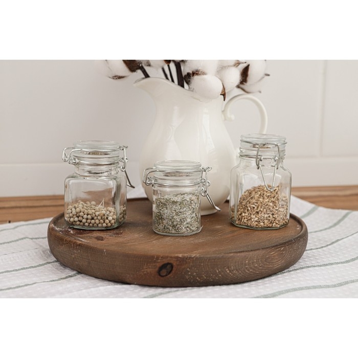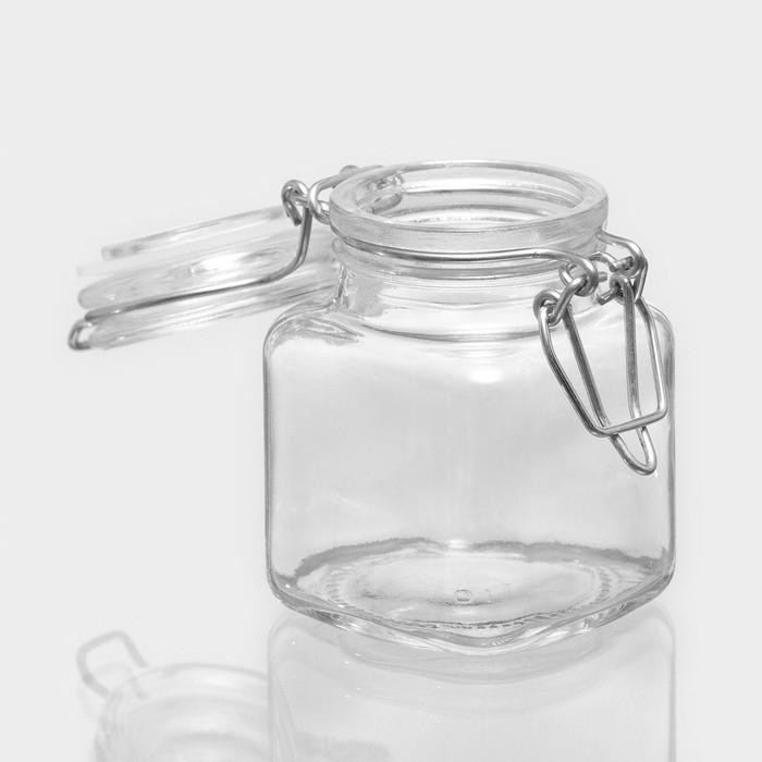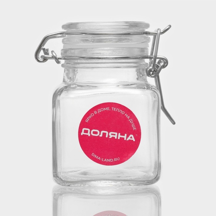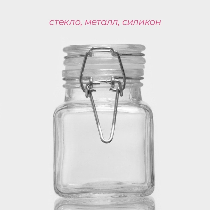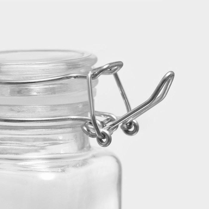 Банка стеклянная для хранения сыпучих продуктов Доляна «Квадрат», 110 мл, 5,5×8 см, с бугельным замком