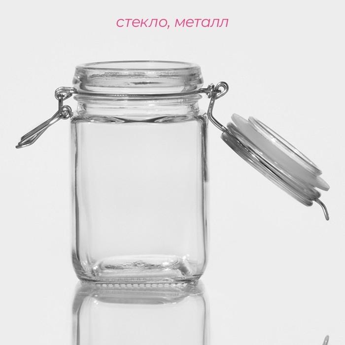 Банка стеклянная для сыпучих продуктов «Квадрат» от Доляна — Банка изготовлена из толстого прозрачного стекла, которое надолго сохраняет свежесть и качество продуктов. Уплотнительная клипса дополнительно усиливает герметичность. Прочный бугельный замок плотно прижимает крышку к горлышку банки, обеспечивая герметичность и сохранность продуктов. Банка подходит для подачи десертов, мороженого, кремов и соусов, а также для хранения мелочей, фурнитуры и бижутерии. Благодаря компактным размерам и удобной форме, банка легко моется и занимает мало места на кухне или в шкафу. Отличный вариант для подарка родным и близким.
