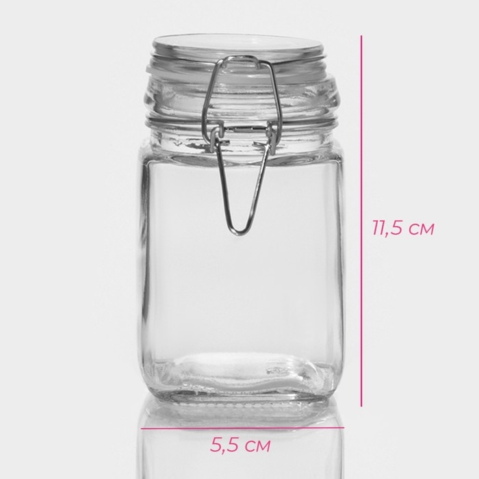 Банка стеклянная для сыпучих продуктов Доляна «Квадрат», 300 мл, 5,5×11,5 см, с бугельным замком
