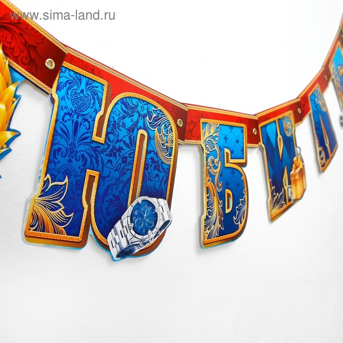 Гирлянда на люверсах «С Юбилеем», корона, длина 135 см