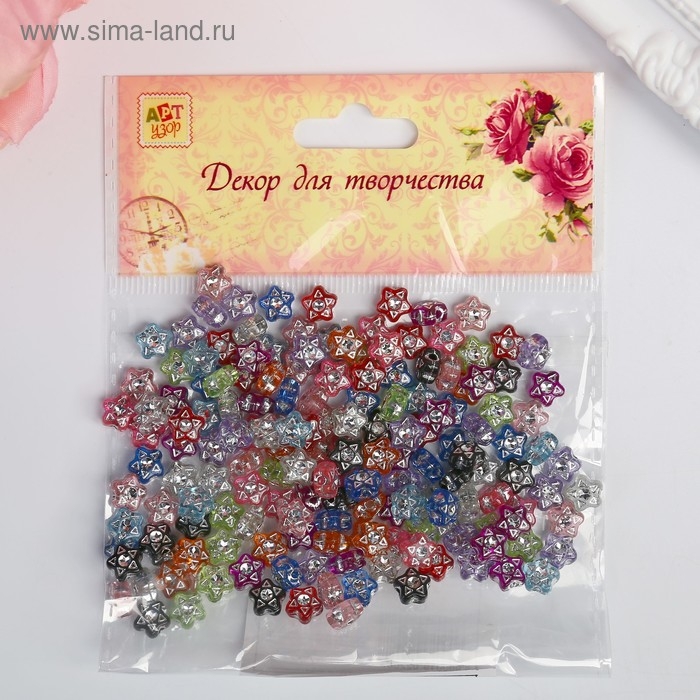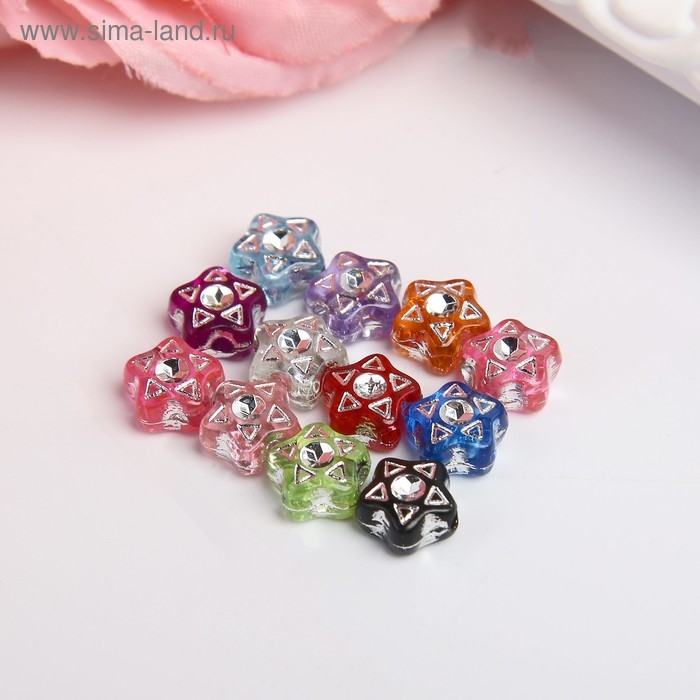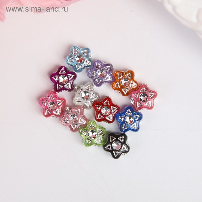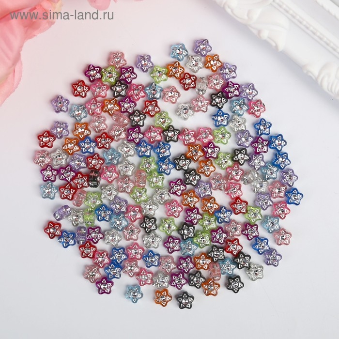Набор бусин для творчества пластик "Звёздочки со стразиками" 20 гр 0,7х0,7 см