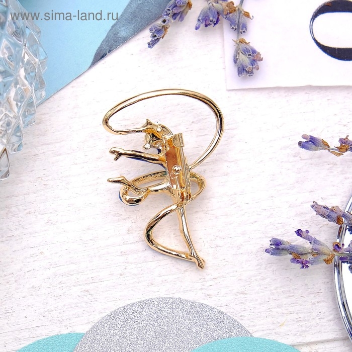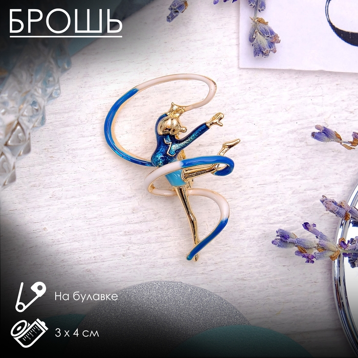 Брошь «Гимнастка» с лентой, цвет синий в золоте