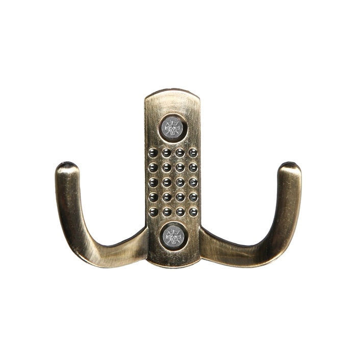 Крючок мебельный ТУНДРА TKD011, двухрожковый, старинная бронза