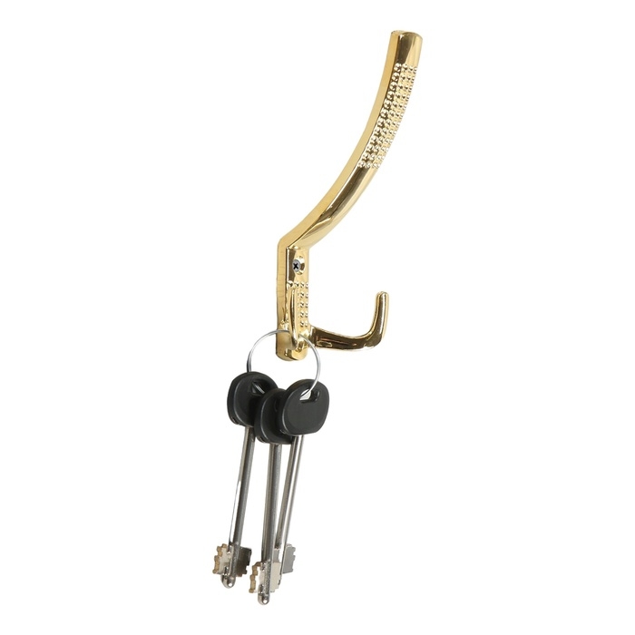 Крючок мебельный ТУНДРА TKD023, двухрожковый, золото
