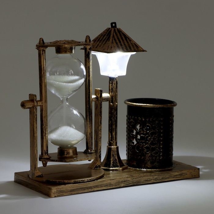 Песочные часы "Уличный фонарик", подсветка, органайзер для канцелярии, 6.5 х 15.5 х 14.5 см