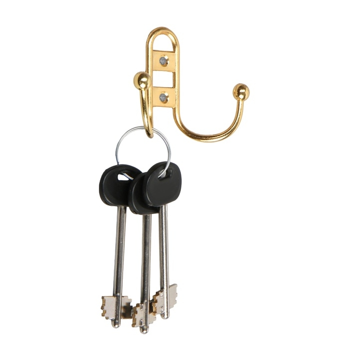 Крючок мебельный ТУНДРА TKD023, двухрожковый, золото