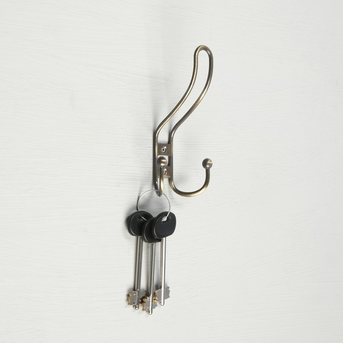 Крючок мебельный ТУНДРА TKD023, двухрожковый, золото