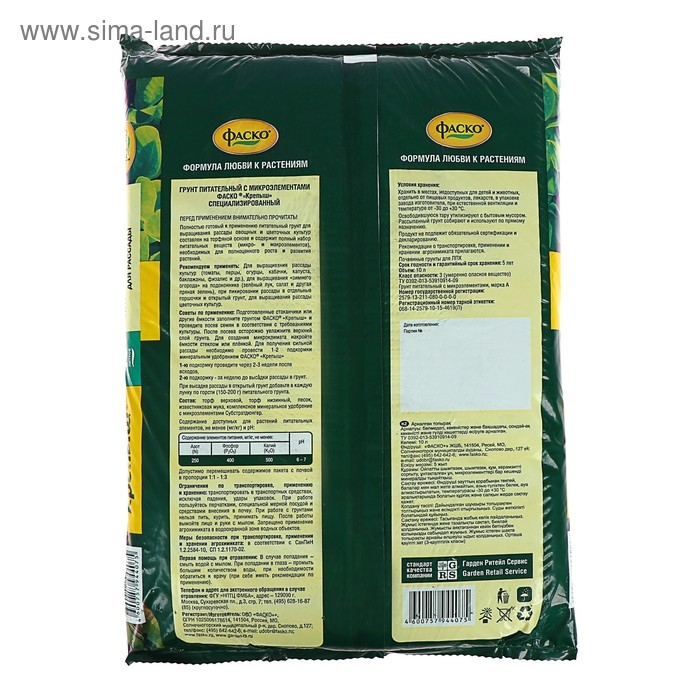 Почвогрунт Фаско Крепыш "Рассадный", 10 л