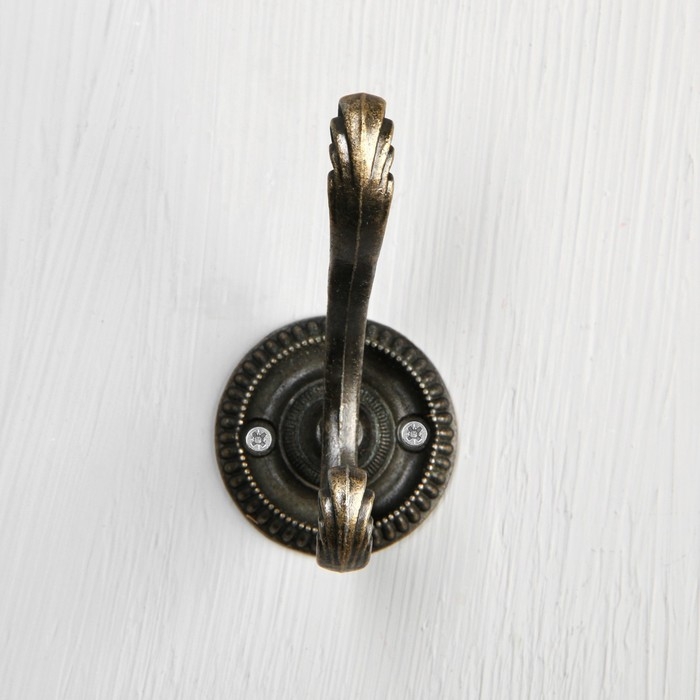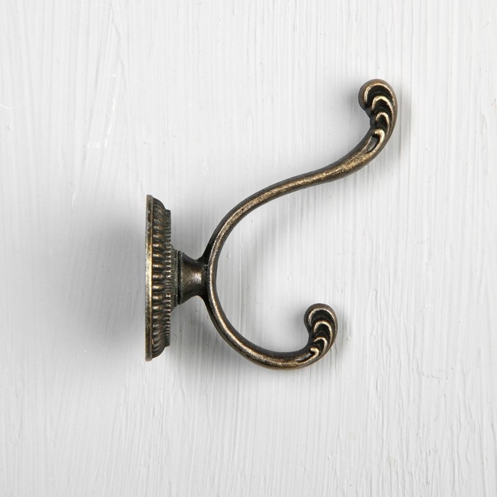 Крючок мебельный ТУНДРА TKD013, двухрожковый, бронза