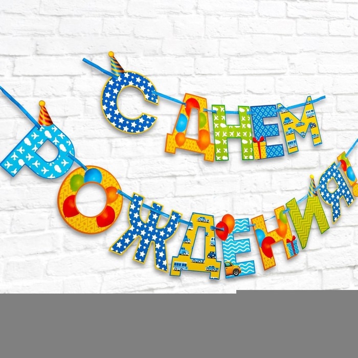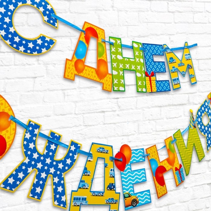 Гирлянда на ленте «С Днём Рождения!«, мальчику, длина 250 см