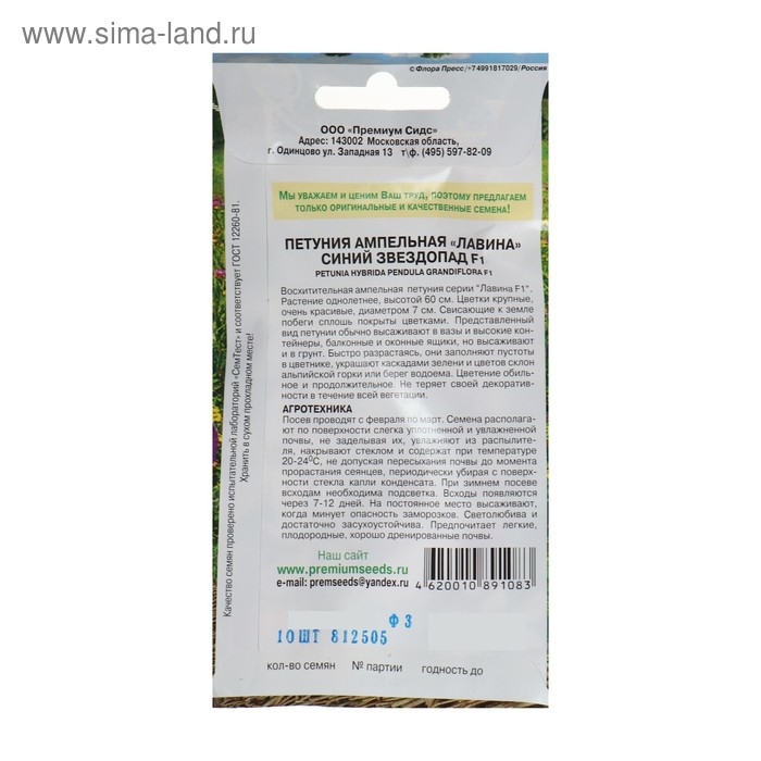 Семена цветов Петуния Ампельная лавина синий звездопад F1, О, 10шт