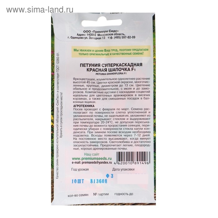 Семена цветов Петуния Суперкаскадная Красная шапочка F1, О, 10шт