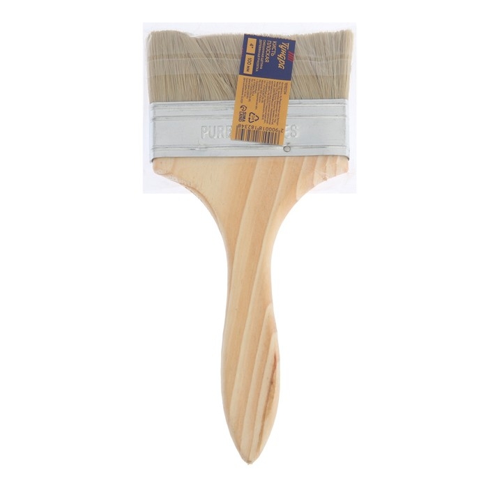 Кисть плоская ТУНДРА, смешанная щетина, деревянная рукоятка, 4", 100 мм