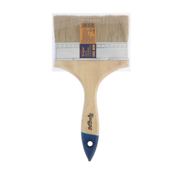 Кисть плоская ТУНДРА, натуральная щетина, деревянная рукоятка, 5", 125 мм