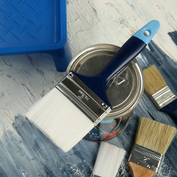 Кисть плоская ТУНДРА, искусственная щетина, пластиковая рукоятка, 3", 75 мм