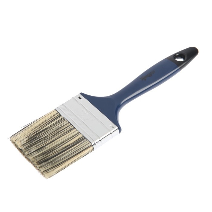 Кисть плоская ТУНДРА, натуральная щетина, пластиковая рукоятка, 3", 75 мм