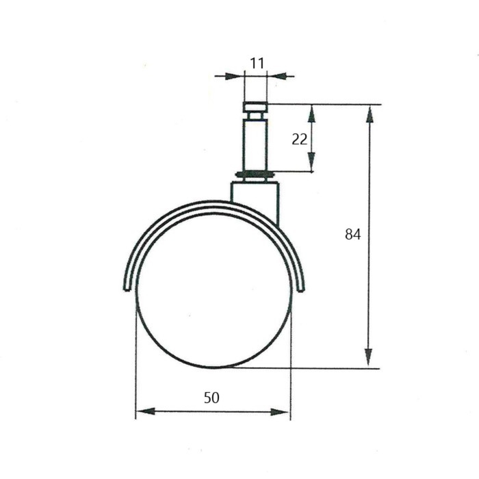 Колесо мебельное, d=50 мм, со штифтом 11x22 мм, c мягким ходом, без тормоза