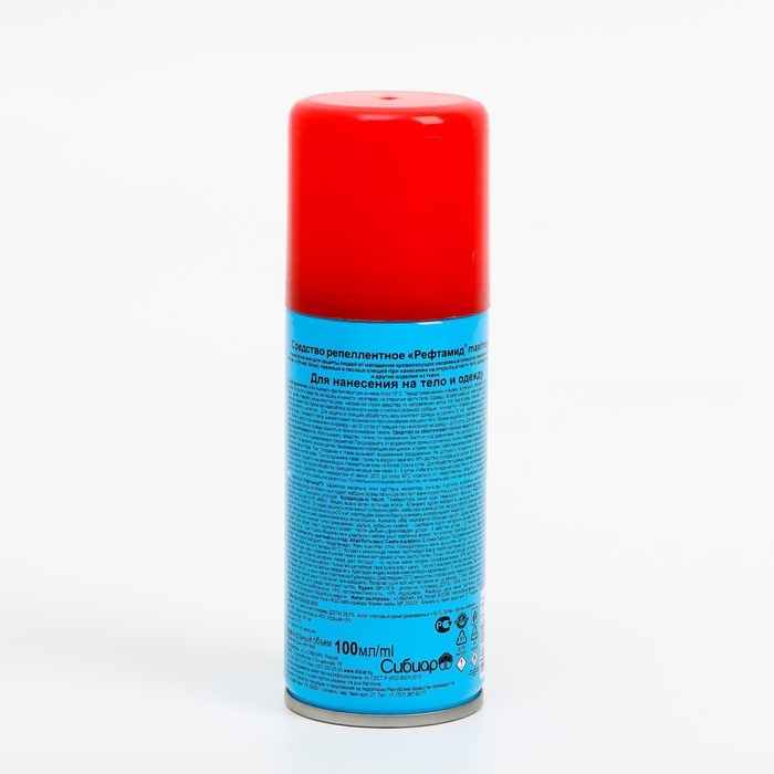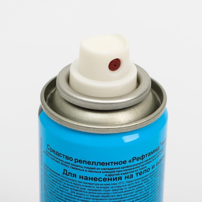 Репеллентный аэрозоль "Рефтамид" Максимум 3 в 1, объемом 100 мл, предназначен для защиты от насекомых, в том числе от клещей. Средство содержит N,N-диэтил-м-толуамид (ДЭТА) в концентрации 28%, пропиленгликоль в количестве менее 5%, отдушку также менее 5%, денатурированный спирт этиловый в диапазоне от 15% до 30% и смесь бутана, пропана и изобутана свыше 30%.Рекомендуется наносить аэрозоль на кожу не чаще одного раза в сутки. Для обработки одежды одному человеку следует использовать не более одного баллона в день. Повторную обработку необходимо проводить не ранее, чем через 3-5 дней. Важно отметить, что данное средство обеспечивает неполную защиту от клещей.При использовании репеллента необходимо соблюдать меры предосторожности. Не рекомендуется наносить аэрозоль на поврежденную кожу, а также на кожу лица и шеи. При попадании в глаза следует тщательно промыть их большим количеством воды. Не допускайте попадания средства на открытые огонь и источники тепла.В случае возникновения аллергических реакций на компоненты репеллента необходимо немедленно прекратить его использование и обратиться за медицинской помощью.