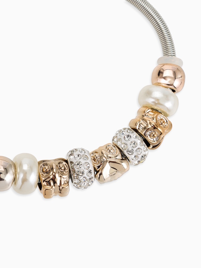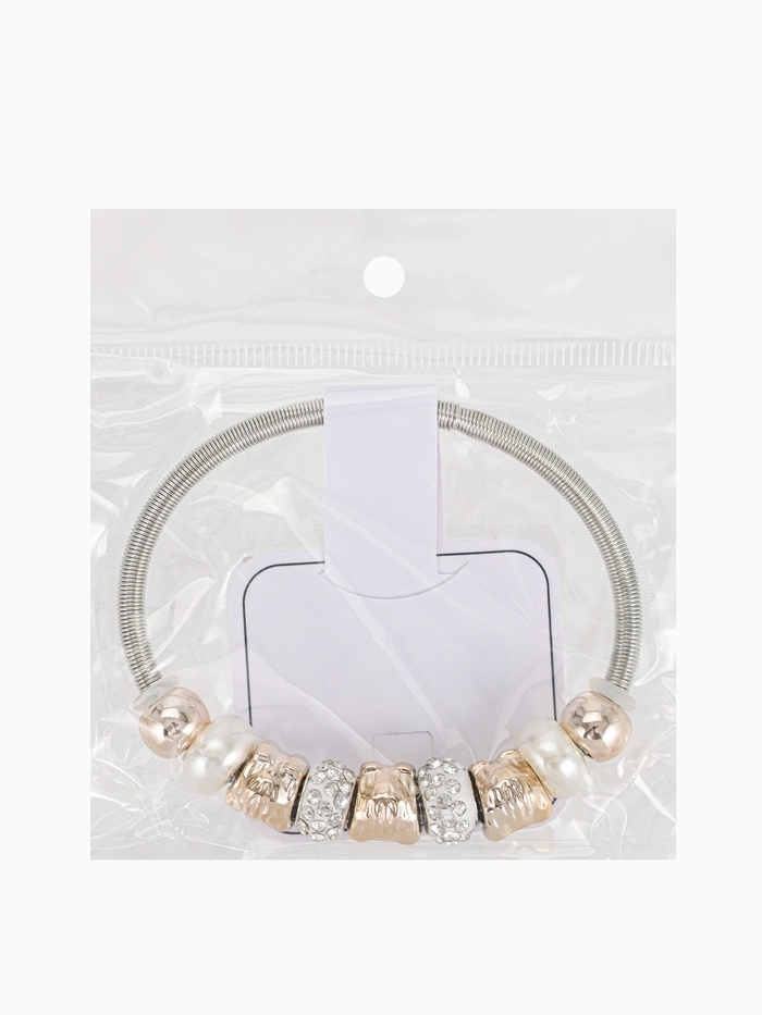 Браслет жемчуг «Пружинка» стразинки, шар №6, цвет белый в серебре, d=6 см