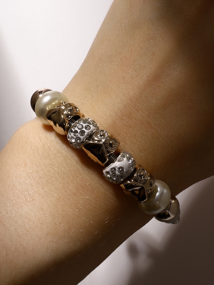 Браслет жемчуг «Марджери» сова, цвет белый в серебре, d=6,5 см
