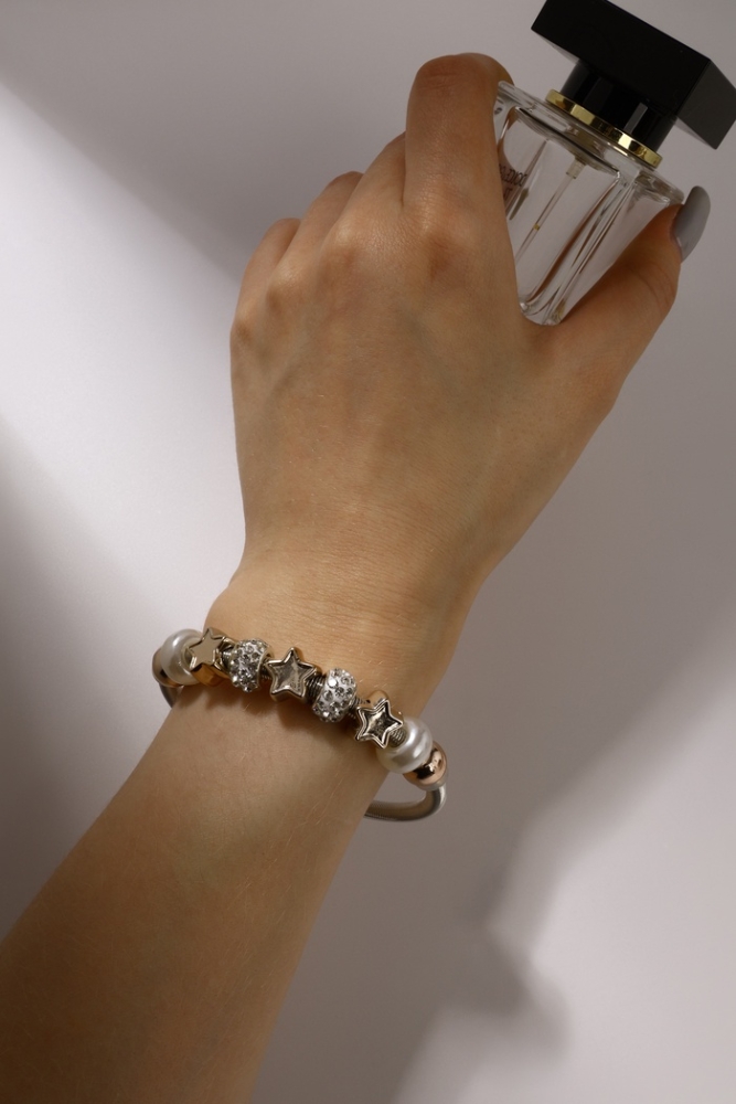 Браслет жемчуг «Марджери» звёзды, цвет белый в серебре, d=6,5 см