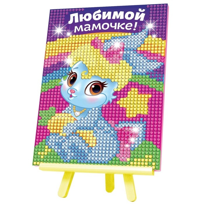 Алмазная мозаика с частичным заполнением на подставке для детей «Любимой мамочке!», 10 х 15 см