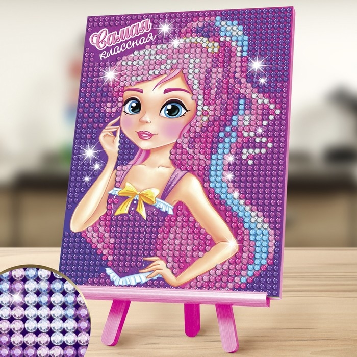 Алмазная мозаика с частичным заполнением на подставке для детей «Самая классная», 10 х 15 см