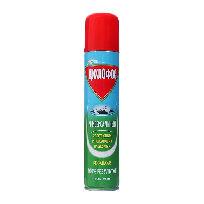 Неотокс Дихлофос №1 универсальный от летающих и ползающих насекомых предназначено для уничтожения в помещениях мух, комаров, москитов, бабочек, моли, ос, а так же тараканов, блох, клопов, муравьев, и кожеедов. Убивает насекомых при контакте и продолжает действовать до 4-х недель. Отдых на даче должен приносить только радость. Дихлофос №1 Неотокс универсальный от летающих и ползающих насекомых призван, чтобы облегчить ваш ежедневный труд и сделать его более эффективным. Проводите время в окружении близких людей, занимайтесь любимыми делами и наслаждайтесь результатами. Неотокс универсальный дихлофос обладает быстрой убойной силой против летающих и ползающих насекомых, найденных внутри и вокруг домашнего хозяйства.СОСТАВДВ – циперметрин 0,2%, тетраметрин – 0,15%, синергист, отдушка.СПОСОБ ПРИМЕНЕНИЯПеред применением упаковку встряхнуть распылять при температуре не ниже 10°С и не выше 40°С. Хорошо встряхнуть перед использованием.