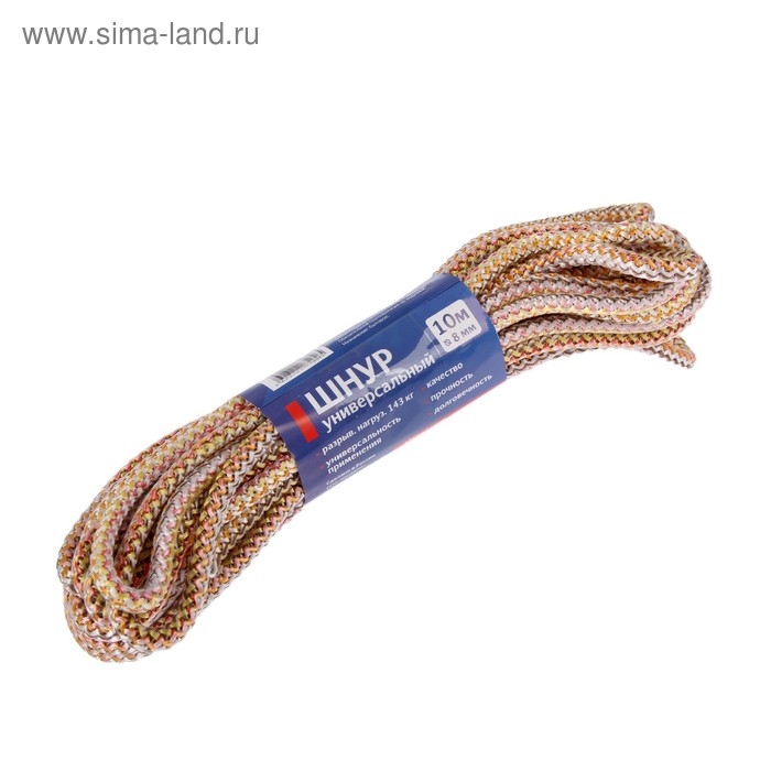 Шнур универсальный с сердечником ПП, d=8 мм, 10 м, цвет МИКС