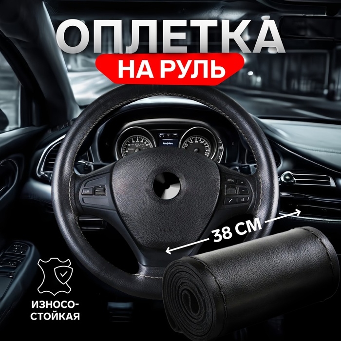 Оплетка на руль Cartage, 38 см, кожа PU, антискользящая, черный