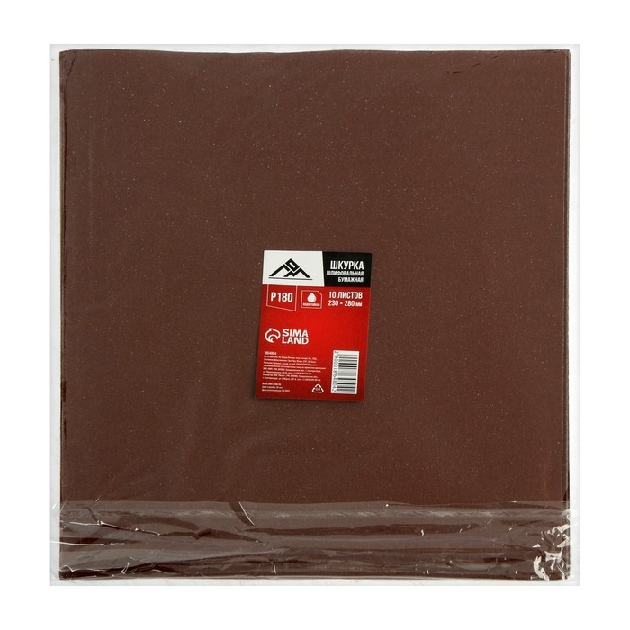 Шкурка шлифовальная в листах ЛОМ, на бумажной основе водостойкая, 230 х 280, Р180, 10 шт.