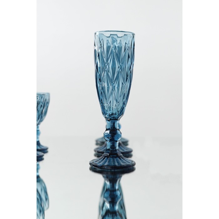 Бокал для шампанского стеклянный Magistro «Круиз», 160 мл, 7×20 см, цвет синий