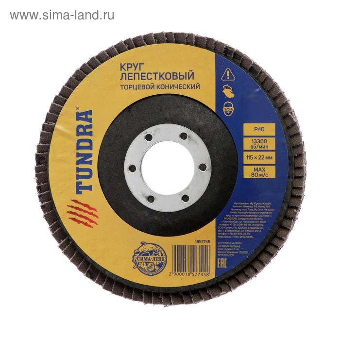 Круг лепестковый торцевой конический ТУНДРА, 115 х 22 мм, Р40