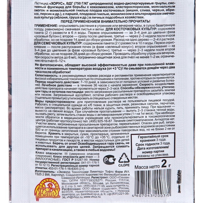 Средство от болезней плодовых культур Хорус, пакет, 2 г
