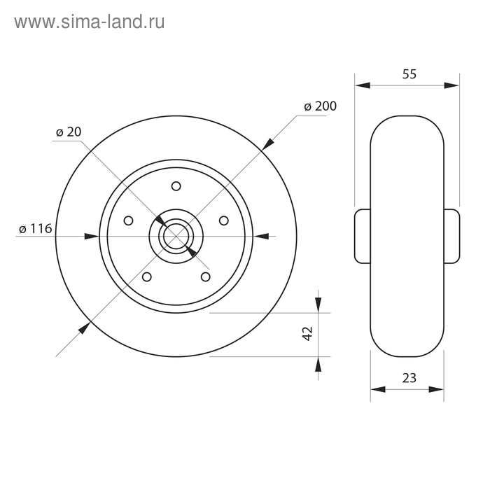 Колесо для транспортных тележек, d=200 мм