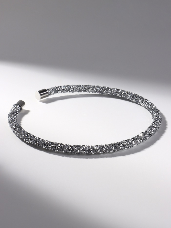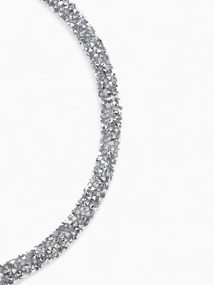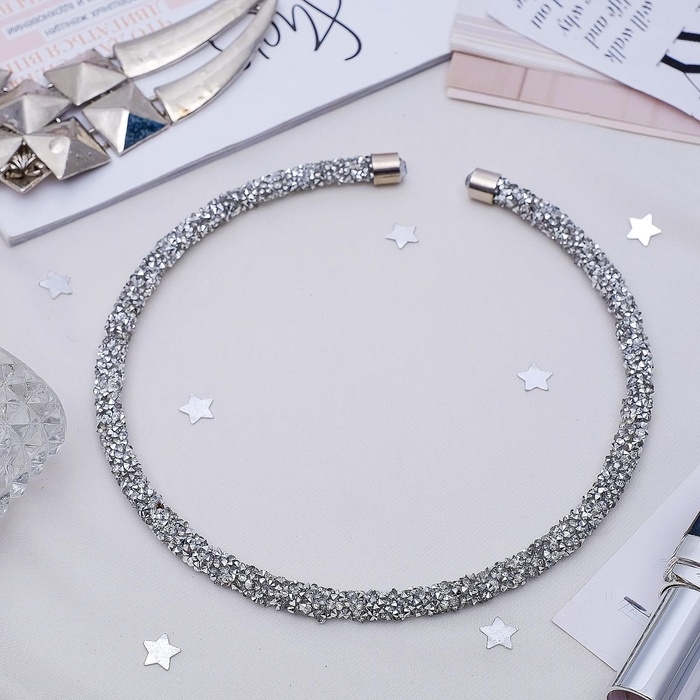 Изготовленное из качественного металла и украшенное стразами, это колье сочетает в себе прочность и красоту. Серебряная фурнитура придаёт ему особый шарм, а единственный ярус создает легкость и изящество, что делает его подходящим как для повседневной носки, так и для торжественных мероприятий.