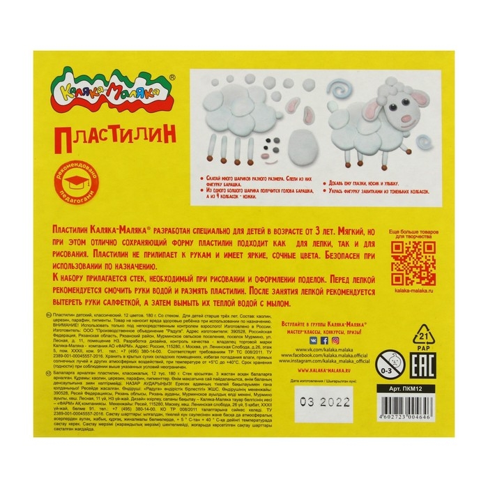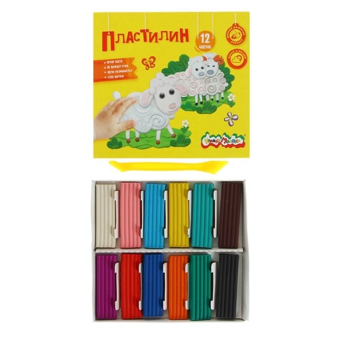 Пластилин 12 цветов 180 г «Каляка-Маляка», со стеком
