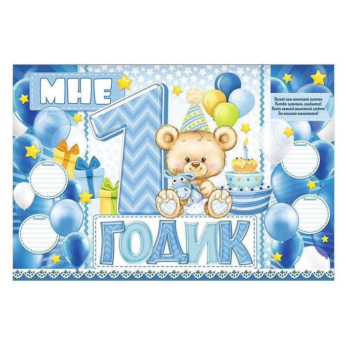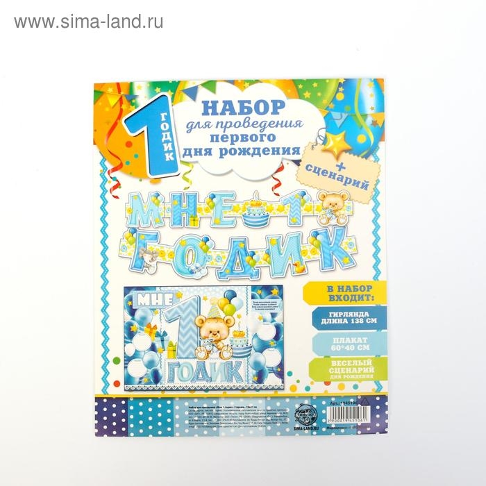 Гирлянда, плакат и сценарий для проведения праздника "Мне 1 годик", 250 гр/кв.м